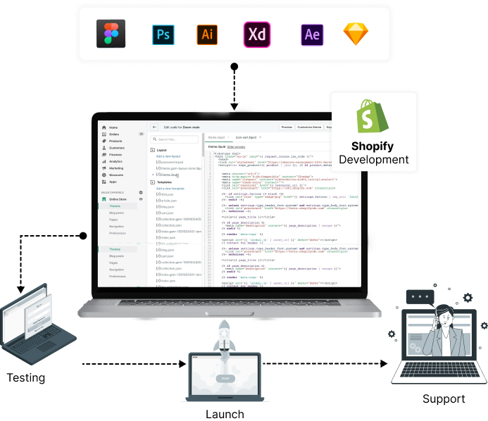 We transform your Figma designs into flawless, pixel-perfect, retina-ready Shopify stores that are compatible across all devices and browsers. Get ready to bring your product launch to life! Seamlessly convert your Figma designs into Shopify and eliminate the complexities of launching your idea. With this solution, success is just around the corner.